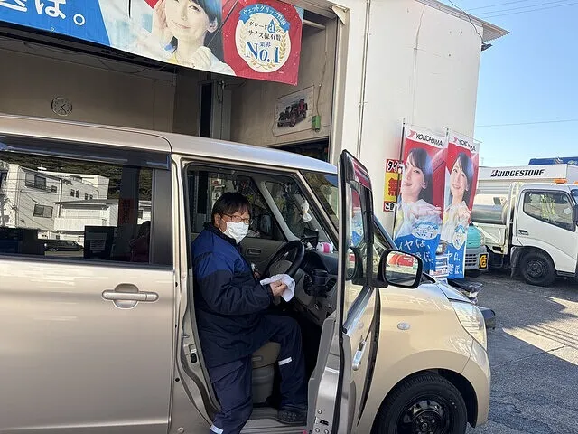 車検後、お渡し前に洗車、室内清掃を行います。ピカピカにしてお渡しいたします。